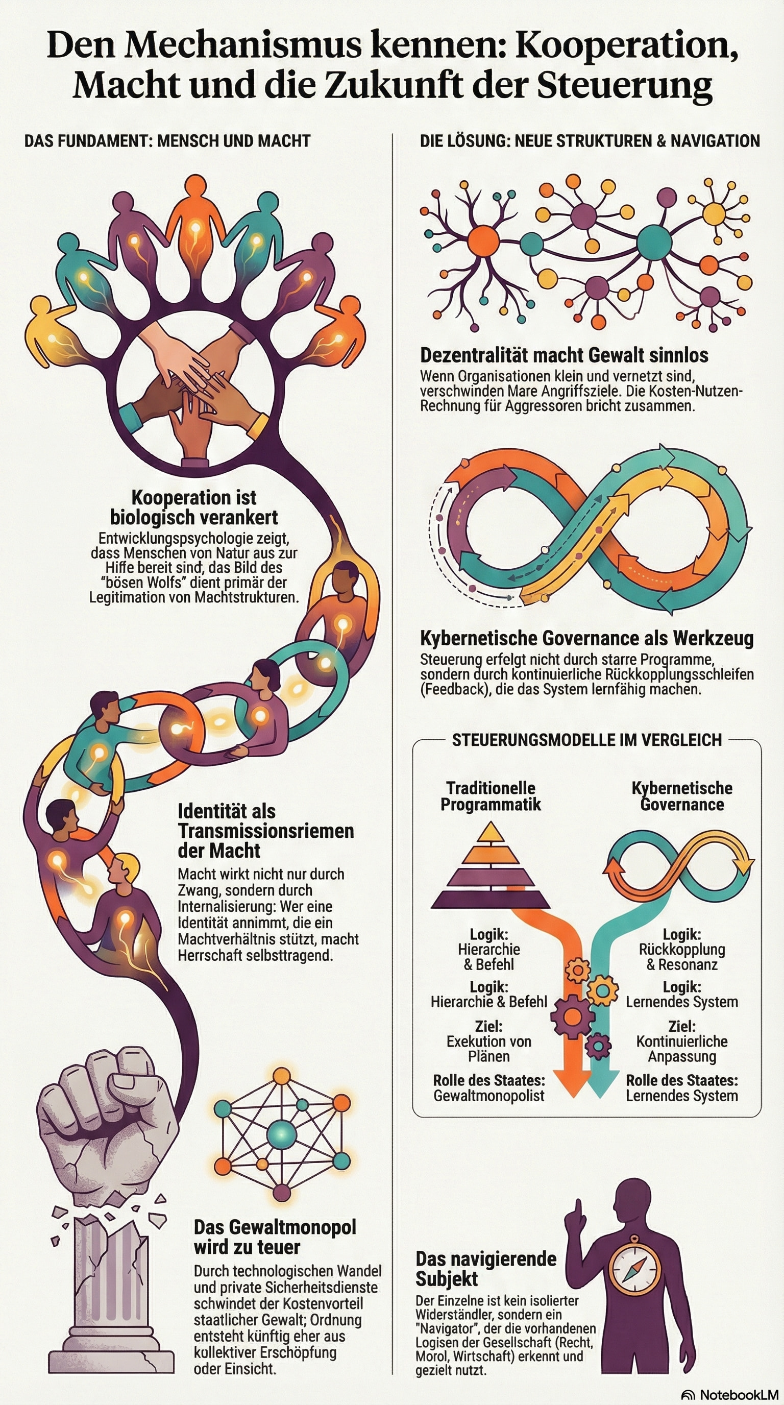Als Folie liegen diesem Text Arbeiten über Macht, Kooperation, Identität, kybernetische Steuerung und gesellschaftliche Transformation zugrunde. Sie werden nicht zitiert, aber sie wirken. Wer sie kennt, wird sie erkennen. Wer sie nicht kennt, findet sie in den Endnoten.